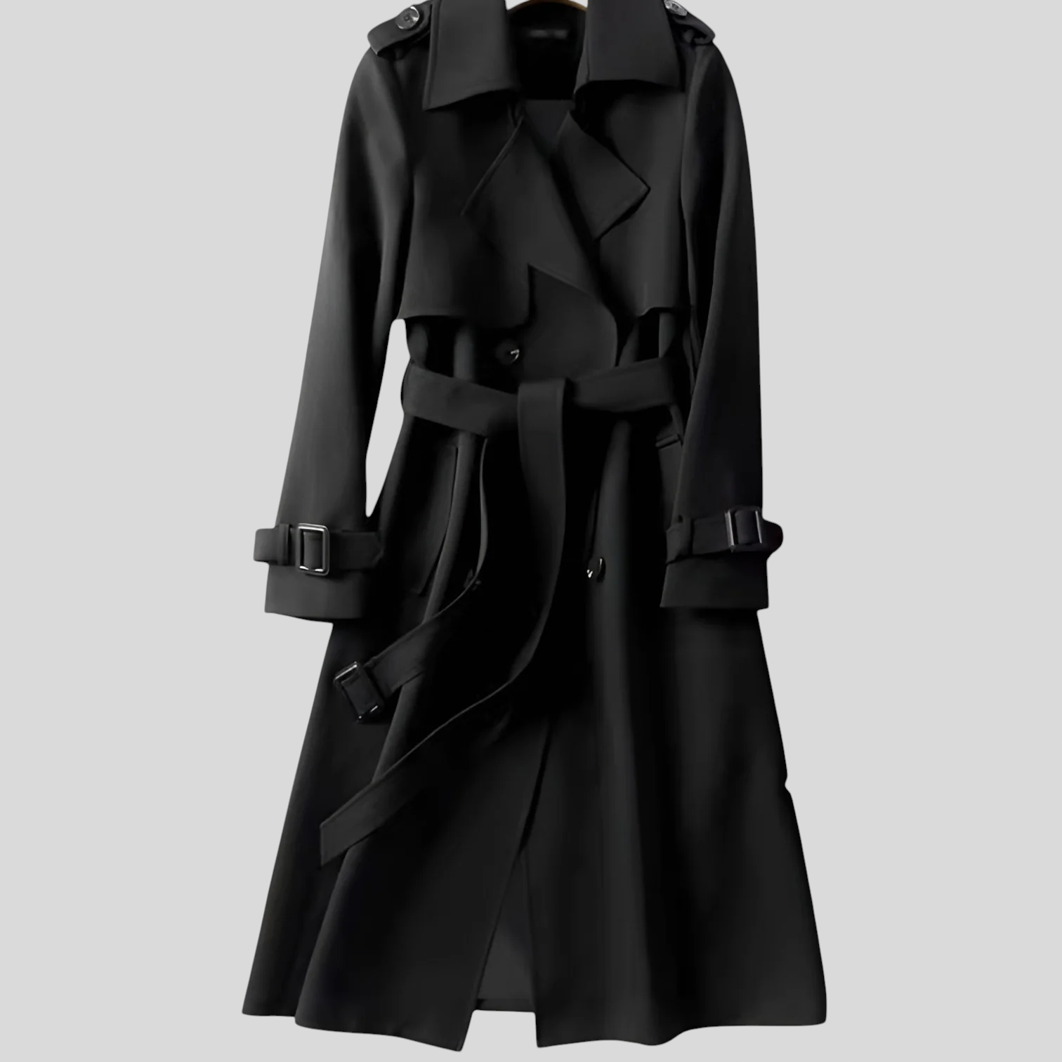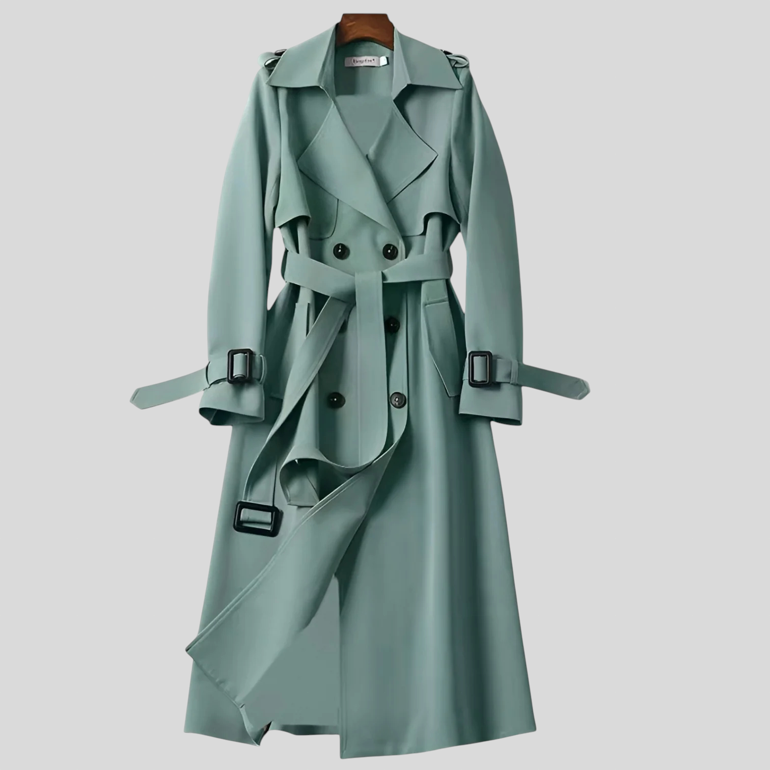 • Detalji inspirirani krojačkim majstorstvom – dvostruki gumbi i podesivi pojas za rafiniran dojam.