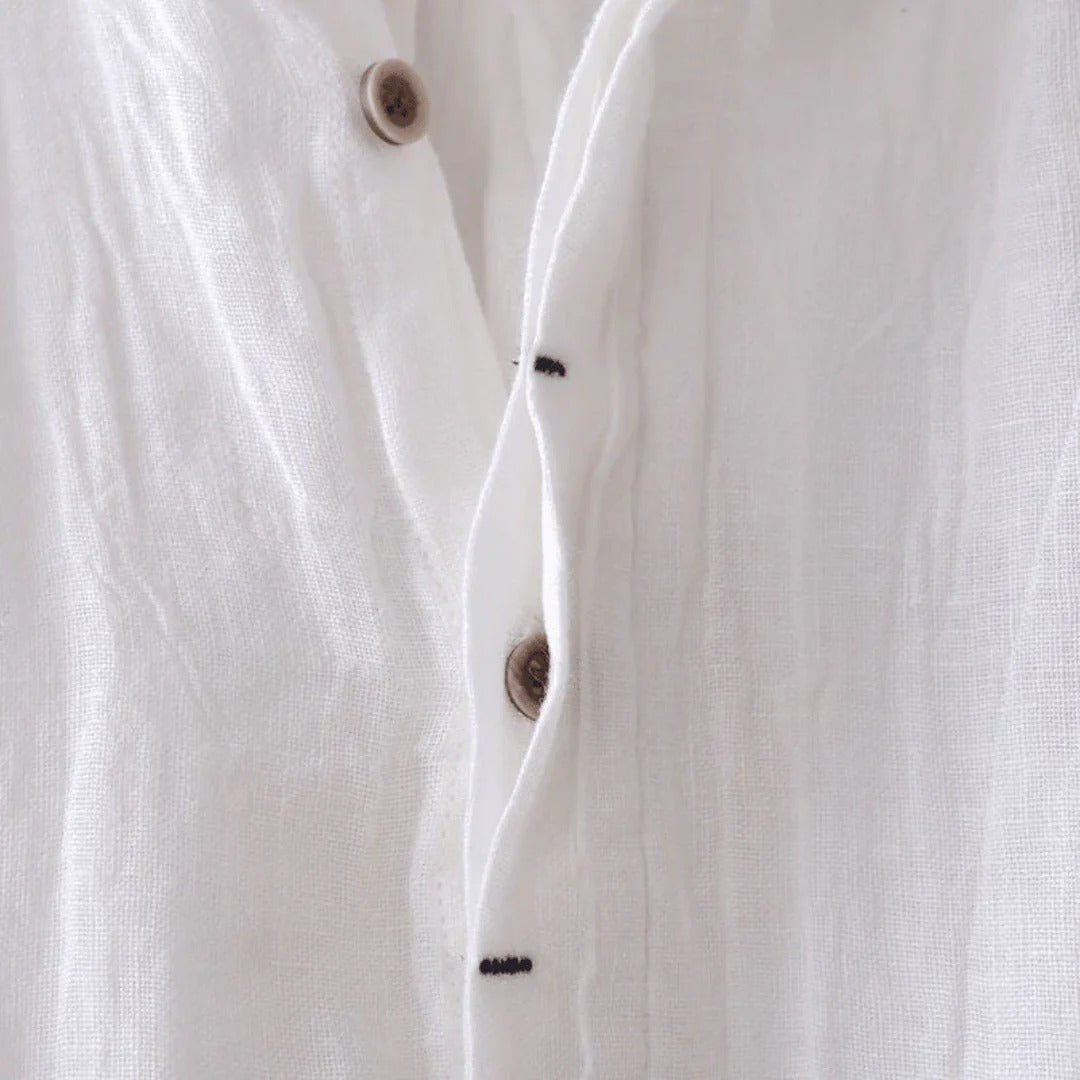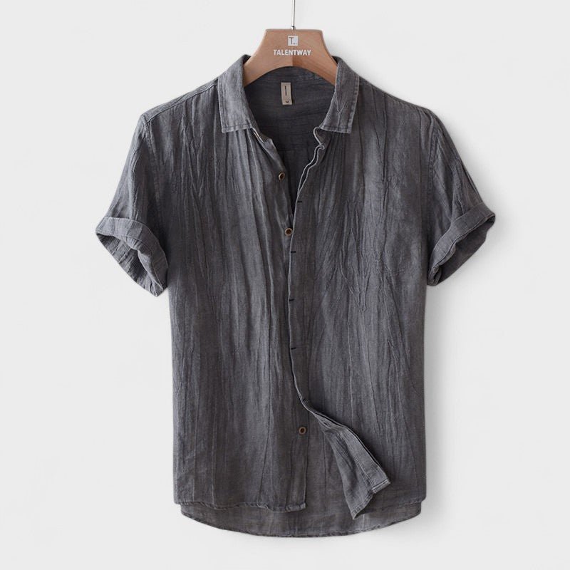 Svojim minimalističkim dizajnom i ručno izrađenim detaljima, ova košulja kratkih rukava pravi je izbor za one koji cijene udobnost bez kompromisa s elegancijom. Izrađena je od lagane tkanine s izvrsnom prozračnošću te savršeno pristaje za ležeran ili opušteni izgled. Ravan kroj i gumbi sprijeda daju joj svestran izgled koji je lako prilagoditi različitim prilikama – od vikend izleta do ljetnog izlaska.