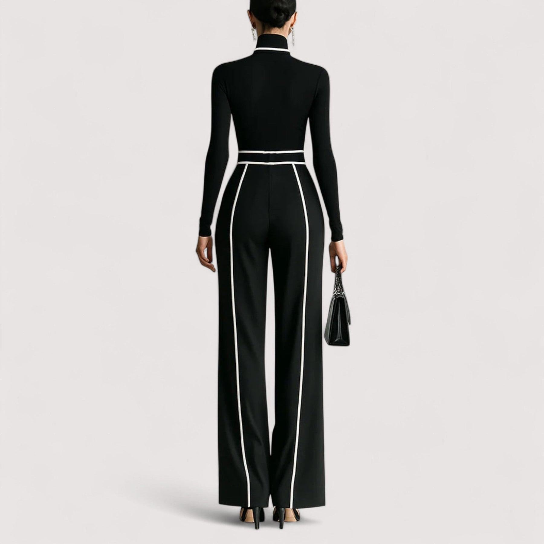 Ovaj luksuzni komplet iz dva dijela spaja sofisticirani gornji dio s lepršavim hlačama širokih nogavica i definira vašu siluetu. Trenutno postignite usklađen, profesionalan i elegantan izgled.