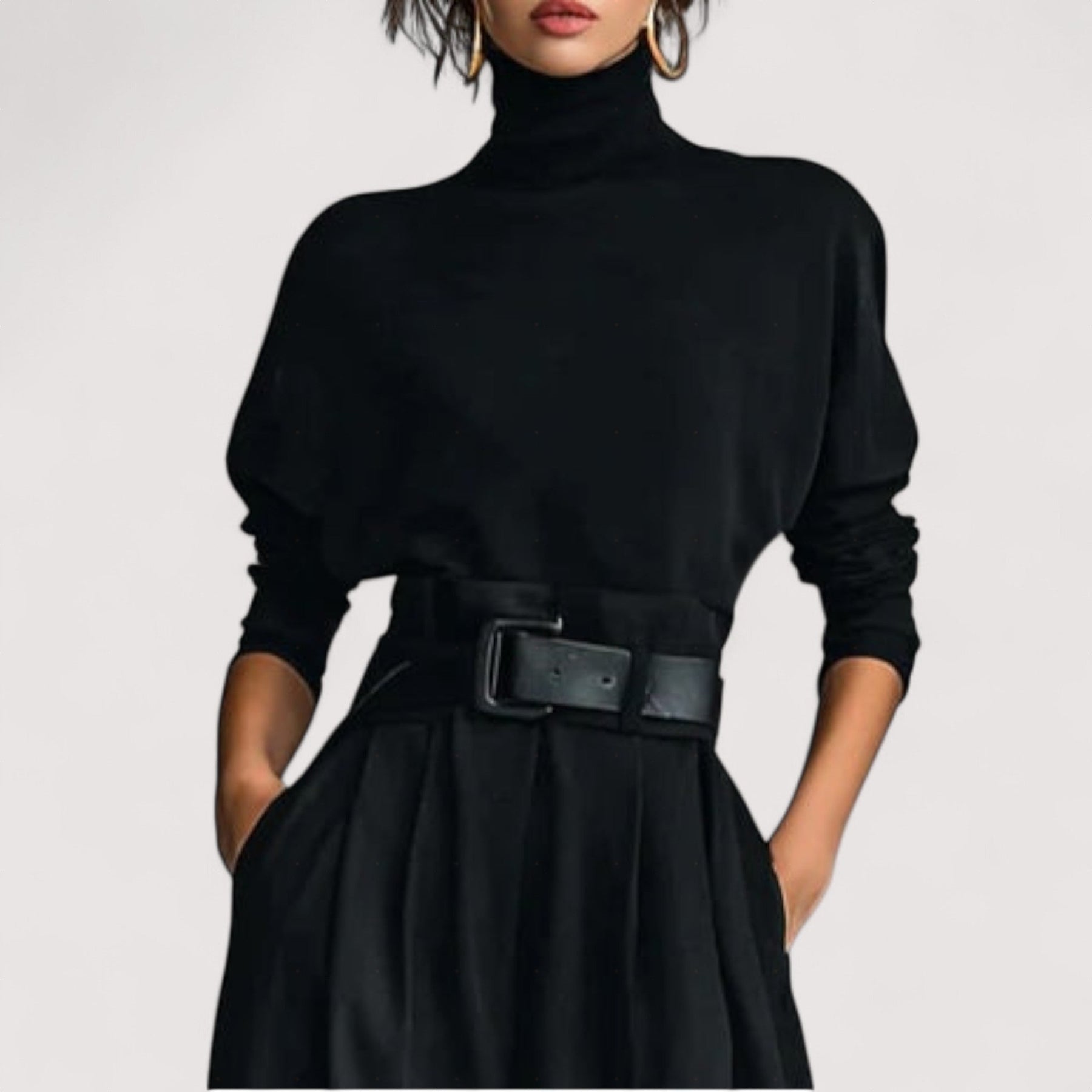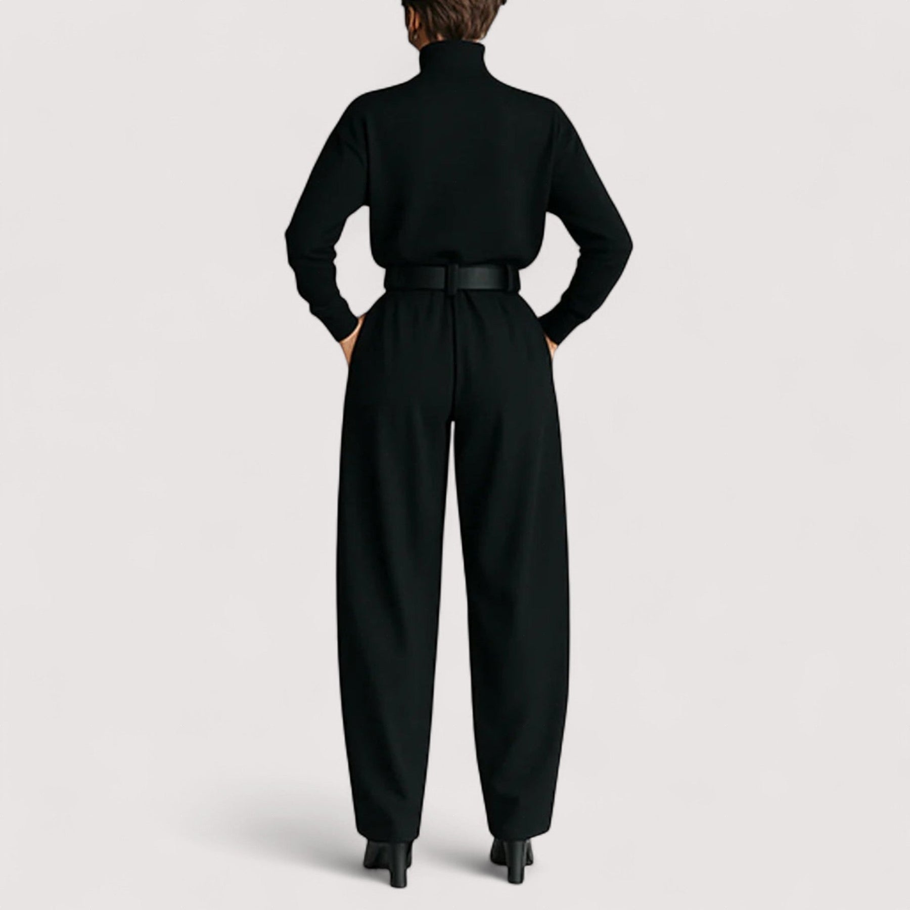 Orina | Crni set od dva dijela s majicom dugih rukava s dolčevita ovratnikom i ravnim hlačama