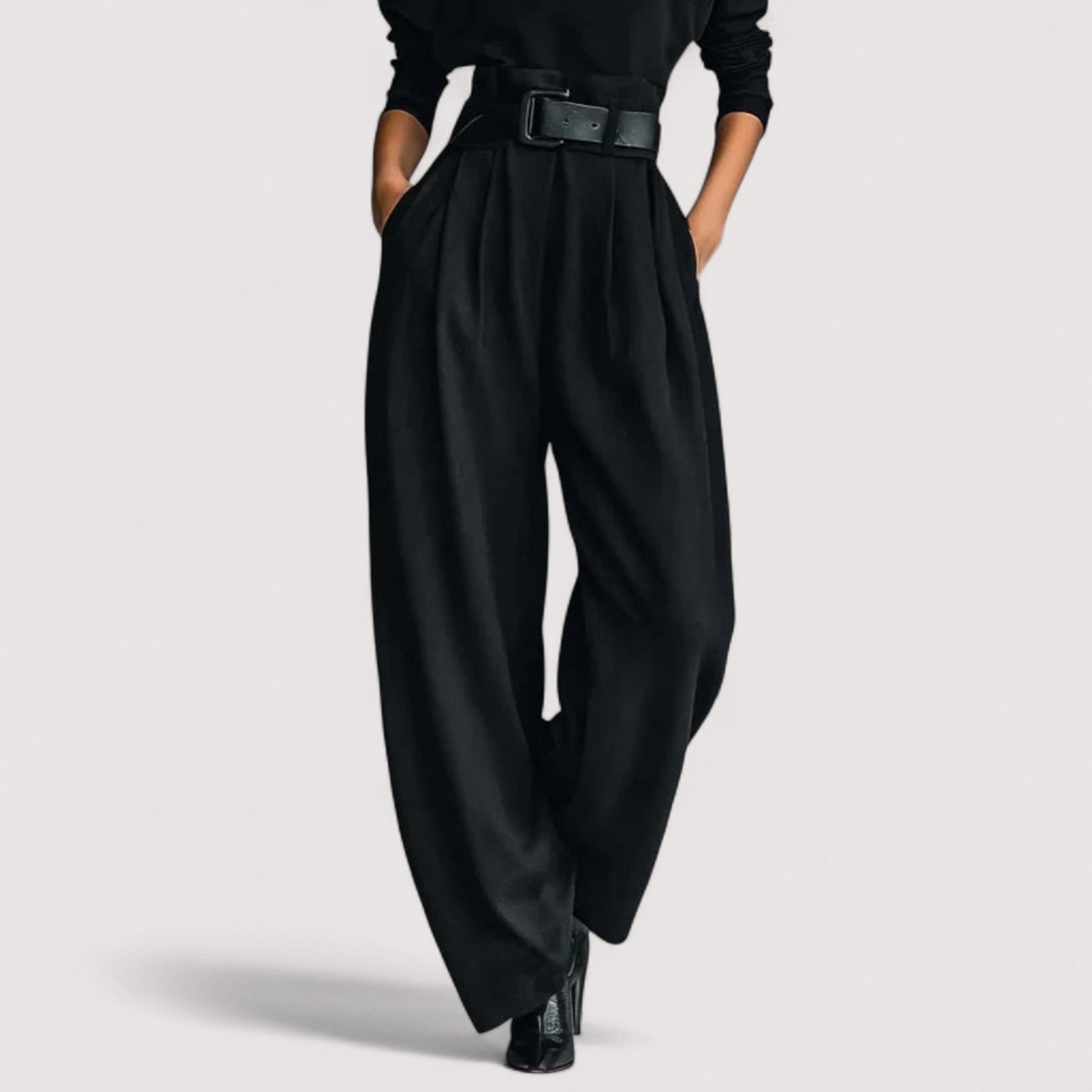 Savršena silueta: Opušteni gornji dio i ravne hlače, nadopunjeni remenom, stvaraju elegantan, laskav oblik.